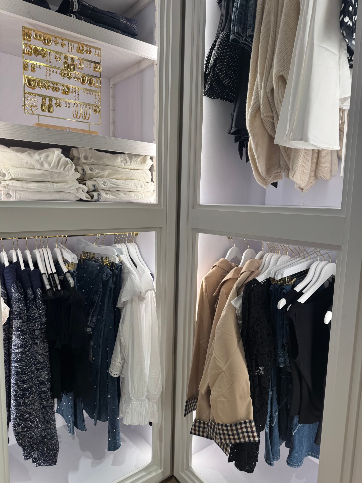 Zodra je binnenstapt, voel je dat hier aandacht is besteed aan ieder detail: de lichte kleuren, het goudkleurige hangwerk, de zachte stoffen en de ontspannen ambiance. Het is een winkel die aanvoelt als een kleine city escape, waar mode en lifestyle moeiteloos samenkomen.